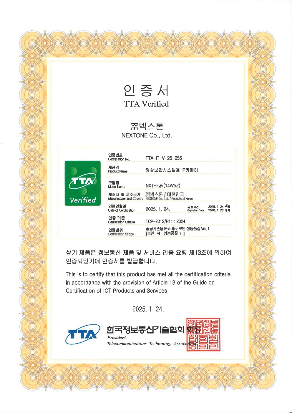 TTA인증서 NXT-IQV(14W5Z)