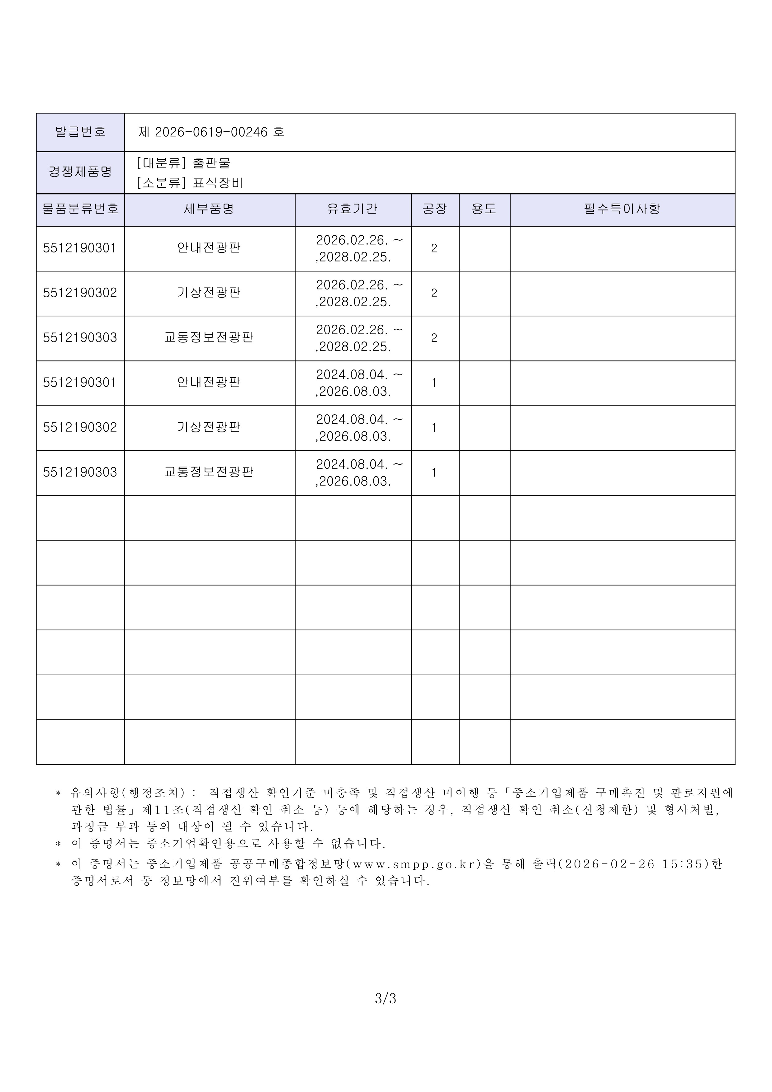 직접생산(전광판)_표식장비_안내전광판,기상전광판,교통정보전광판(2공장 )